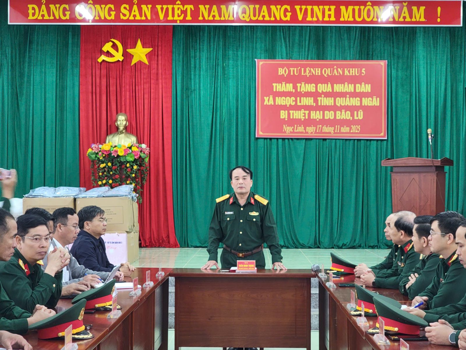 Sáng 17/11, đoàn công tác của Quân khu 5 do Đại tá Trần Minh Trọng – Phó Chính ủy Quân khu 5 làm trưởng đoàn đã đến thăm hỏi, động viên và trao quà hỗ trợ các hộ dân bị thiệt hại nặng do bão lũ tại xã Ngọc Linh. Tham gia cùng đoàn có Đại tá Nguyễn Thanh Xuân – Phó Chủ nhiệm Chính trị Quân khu 5.